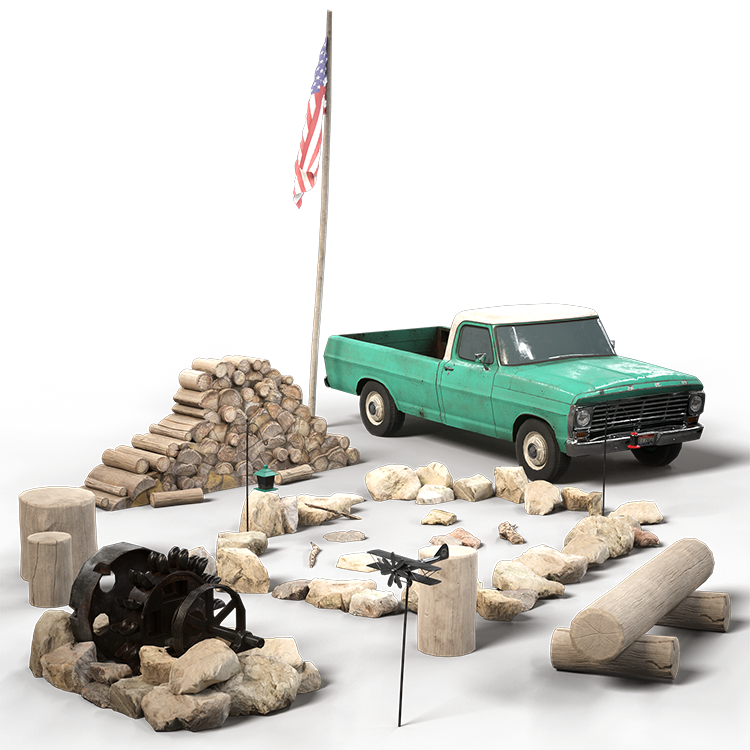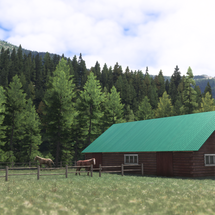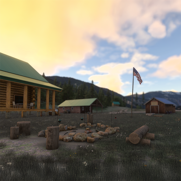 Um der Szenerie Leben einzuhauchen, platzierten wir animierte Menschen und Tiere. Gebäude wie die Big Creek Lodge wurden von Grund auf neu gebaut, und entsprechen den realen Gebäuden. Eine große Anzahl von Assets wurde von unseren kreativen Mitarbeitern sorgfältig platziert, um die Glaubwürdigkeit der Szene zu gewährleisten und ein fast romantisches Bild der Landebahn zu schaffen!